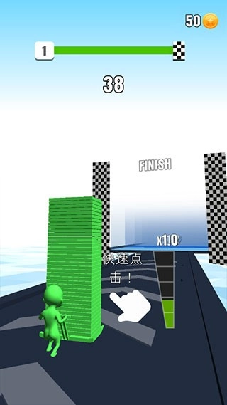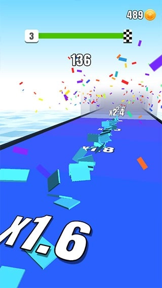 3、在正确路径上把所有砖块进行叠加,要是砖块颜色叠加出现错误,那么砖块数量会相应减少。