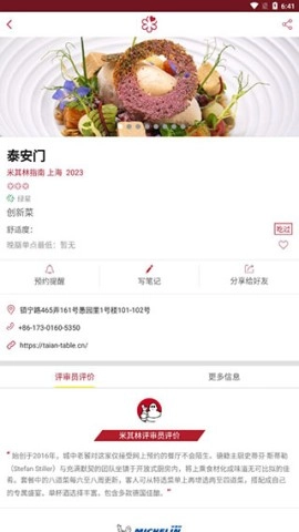 2、能够查看米其林星级餐厅的评定结果,以及参考其他用户的评论与评分,借此更全方位地知悉餐厅状况。
