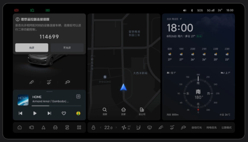 适用于L6、L7、L8、L9以及MEGA车型。连接时,请务必保证手机与车辆副驾屏控制中心的蓝牙处于开启状态。首次连接时,需在车内屏幕进行确认。成功进入界面后,无需账号登录或繁琐认证,可直接使用,且支持同时连接两个手机设备。