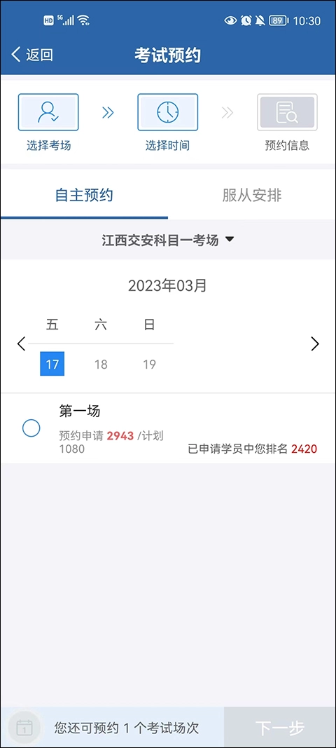 2、用户需依据自身位置,挑选一处方便的考试场地。
