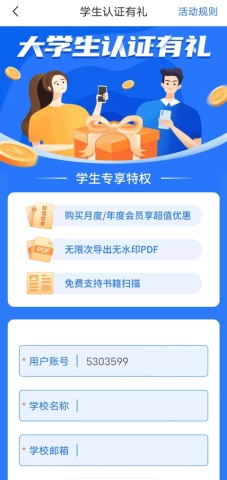 要是你身为大学生,还有大学生认证专属福利哦,能畅享无限次导出无水印PDF以及书籍扫描服务,堪称上学路上的绝佳助手!