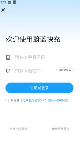 1、完成蔚蓝快充后,用手机号登录。