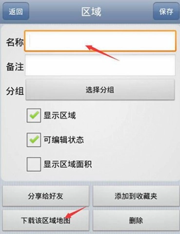 3、运用“区域”与划线功能,于地图上划定从当前位置至目标的范围。