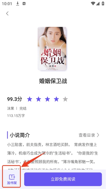 2.进入小说详情介绍页后点击左下角的“加书架”即可快速将小说进行收藏