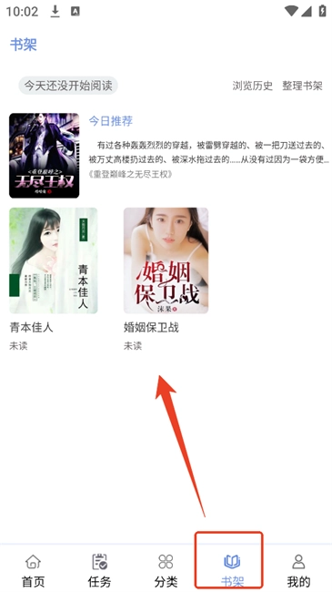 3.返回主页面点击【书架】专栏即可查看到刚才收藏的作品