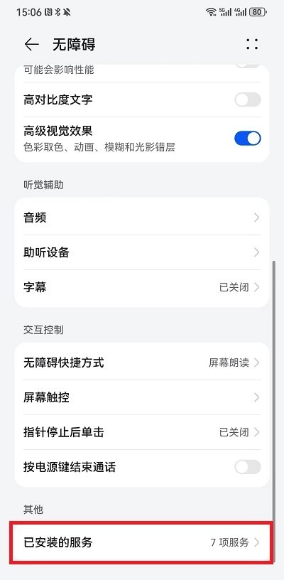 3、因为软件需要使用手机的无障碍功能,所以我们点击OK之后就会跳转到无障碍功能界面,在这里找到最下方的【已安装服务】;