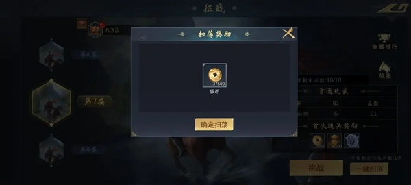 主公可对已通关的层数展开扫荡,每日仅有1次扫荡机会。消耗扫荡次数,并不会对玩家的挑战机会造成影响。