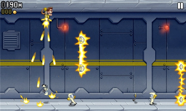 疯狂喷气机正版是一款颇具难度的跑酷射击挑战游戏,玩家需要在游戏过程中一边躲避障碍物,一边收集金币,以此让自己获取超高分数。