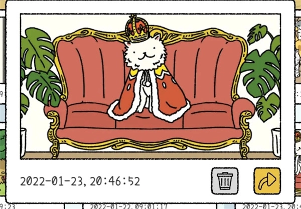 这就是大家经常询问的拍照方法。瞬间是随机出现的,时不时打开游戏,或许就会出现一个相机,点击它就能获得一张新照片。(仅可用于给猫咪或访客动物拍照,照片内容同样随机。)