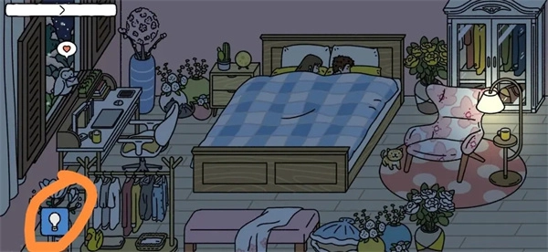 当房间内熄灯后,在左下角会出现一个灯泡标志,只需点击这个标志,就能对灯光开关进行控制。