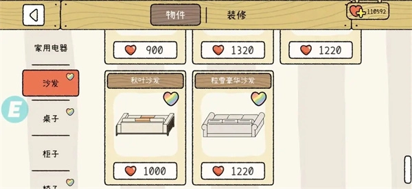 不少友友还发现,每次并非全套家具都会更新,往往只是单独新增柜子、桌子这类家具。打上彩心标志,是为了让大家能更便捷地找到新家具。