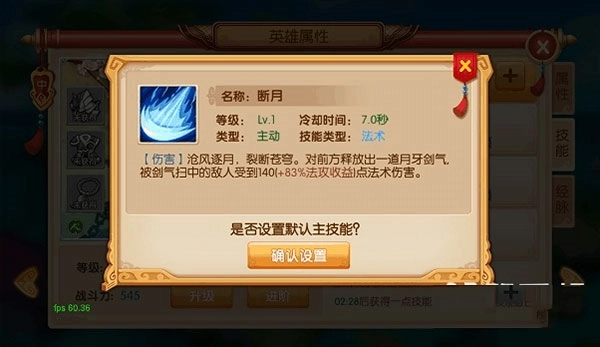 2、上阵时,每个英雄除被动技能外,仅能使用一个特定技能,将该技能设为默认主技能即可。