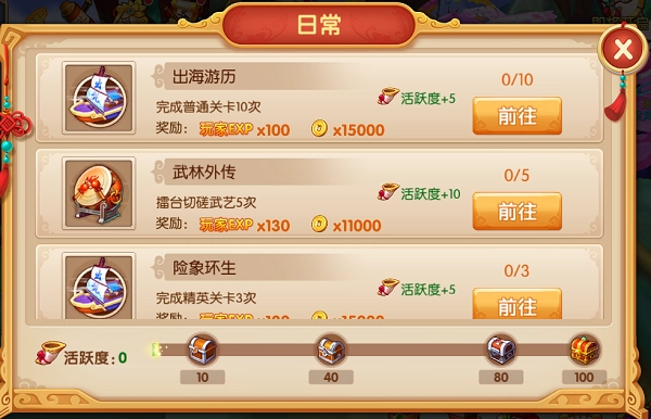 A:在主界面点击“日常”按钮,看看能完成哪些内容,日常里的这些活动可是能给众多玩家提供不少经验的哦。