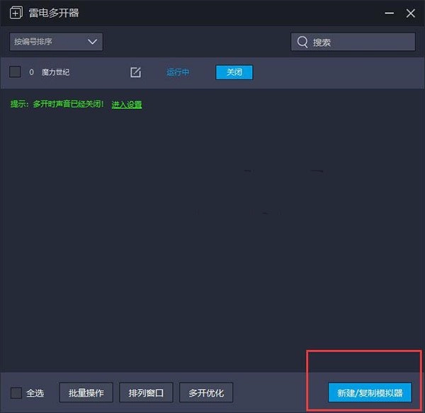 通过双击操作打开雷电多开器,随后点击界面中的“新建/复制模拟器”按钮。