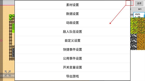 用户也能够点击右上角标有“编”字的按钮,进而对素材、数据、动画、敌人队伍等游戏要素开展编辑设置。