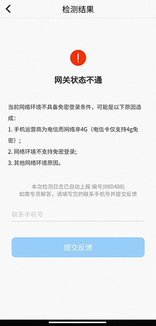 4、最终检测结果会呈现无法登录的原因,这时留下自己的联系方式,能够迅速向工作人员【提交反馈】。