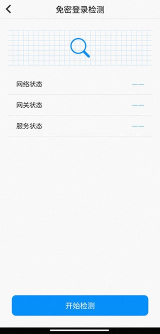 3、点击下方【开始检测】按钮,登录排障功能随即开始检查你的网络、网关及服务状态。