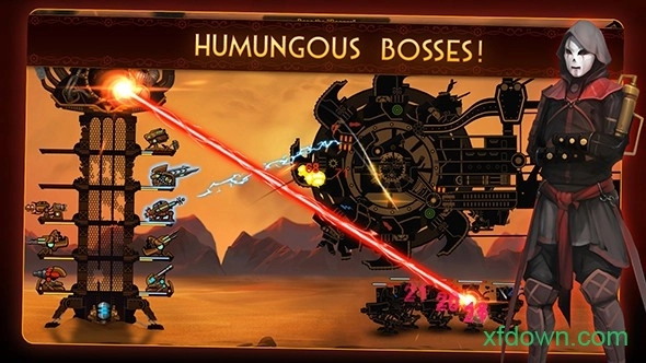4. 强大的敌人来袭!敌人已获取额外盔甲,不过,他们的弱点也随之暴露——超级武器与特殊奖励。这些将极大提升你在战斗中获胜的几率。还有巨大的 BOSS!初次尝试,你很难击败这些蒸汽怪兽。在这蒸汽朋克风格的城市里,建立科学的研究实验室、仓库以及工厂,用以建造新的炮塔。投入领土之战!掌控工厂,为你的炮塔生产零部件。