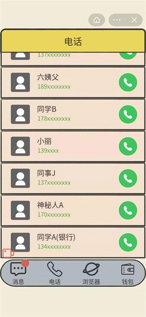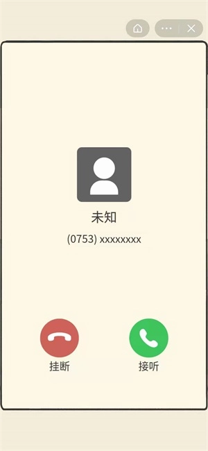 第一步:游戏初始呈现的是一个通关界面,此时我们不能挂断,只能选择接通。