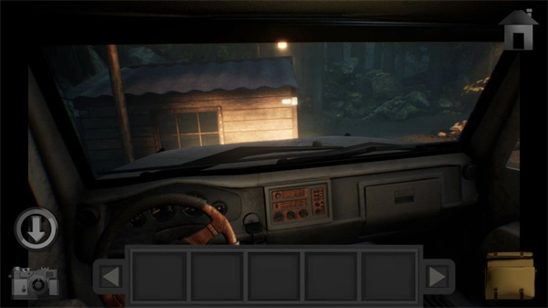 拿出车钥匙,转动开启车灯,让灯光照亮前方的小屋。