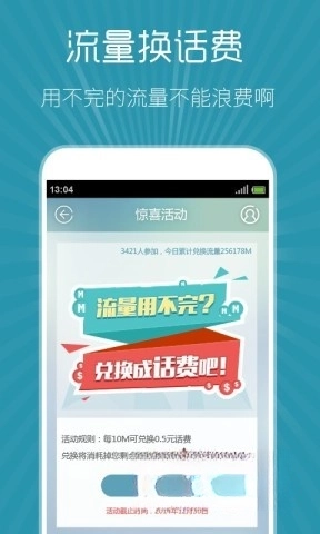 2、不想月底还剩余那么多流量却无法使用?流量精灵可以在你需要的时候将剩余数据转化为手机信用,让每一份流量都物尽其用。同时,在兑换过程中添加视频播放,等待也不再无聊!