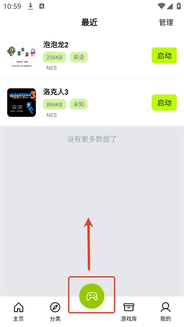 4.在软件主页面点击中间绿色的手柄图标可看到历史游玩记录