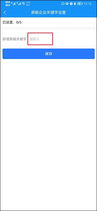 2. 在屏蔽页面中输入需要屏蔽的企业关键词,然后点击保存按钮。
