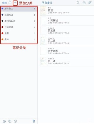 1、打开后呈现的是笔记管理界面,在此界面能够对笔记开展分类管理。