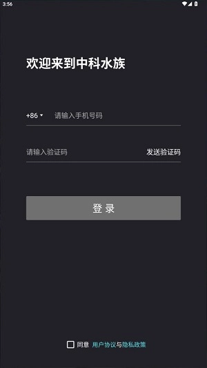 1、进入中科水族后,输入自己的手机号进行登录;