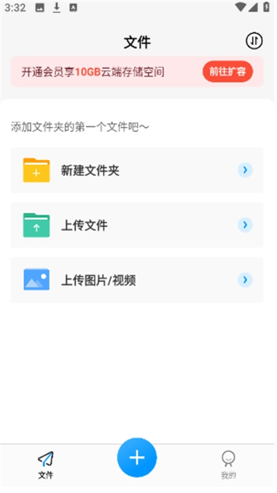 2. 首页涵盖新建文件夹、上传文件、上传图片以及上传视频等版块内容。