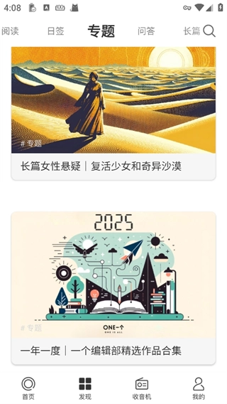 5、点击【收音机】选项,即可查看不同年份与月份的连载文章。