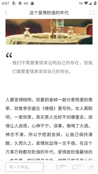 一款App,是极具韩寒风格的阅读软件,以简约清新闻名。它在满足阅读需求的基础上,融入诸多新颖且具特色的元素。在竭力为用户带来丰富优质阅读体验的同时,用户还能分享阅读的喜悦,与作者或志同道合的读者在同一平台交流留言,让阅读不再单纯。而且,其别具一格的阅读模式,为用户营造了良好的阅读环境。无论何时何地,你都能在这款软件上安静阅读,探索新领域。快来这儿写下你的故事与心情,生成专属你的小故事吧!