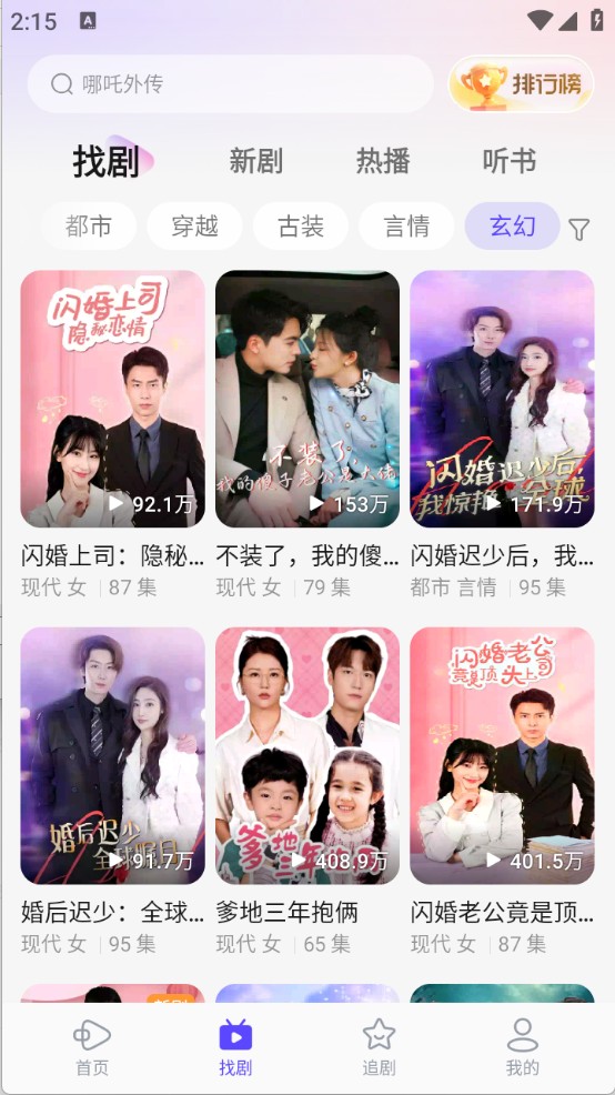 2、在“找剧”页面,汇聚了大量优质短剧资源,涵盖言情、穿越、古装等多种类型。