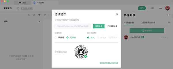 以电脑客户端版来说,在右上角存在醒目的「协作」按钮,点击此按钮后,能够依据不同的权限需求,把文档链接发送给协作者,供其进行编辑修改。