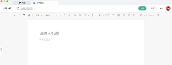 当前,讯飞文档仅支持文本类文档格式。就电脑客户端版本而言,创建新文档后,其显示页面如下: