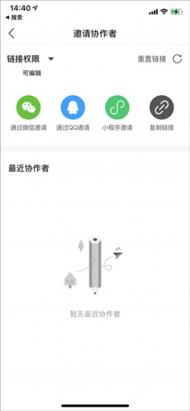 在手机版中,能够借助微信与QQ向协作者发送链接。