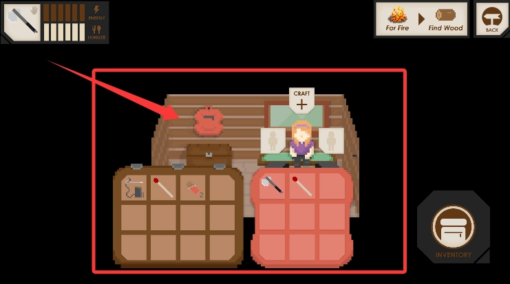 3、轻点背包按钮,查看已获取的生存资源,要合理规划物品使用策略。