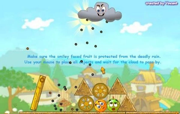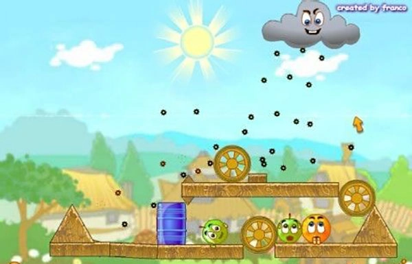 游戏的画风极为小清新,此刻你务必守护好这两个橙子,绝不能让它们被雨水打湿。