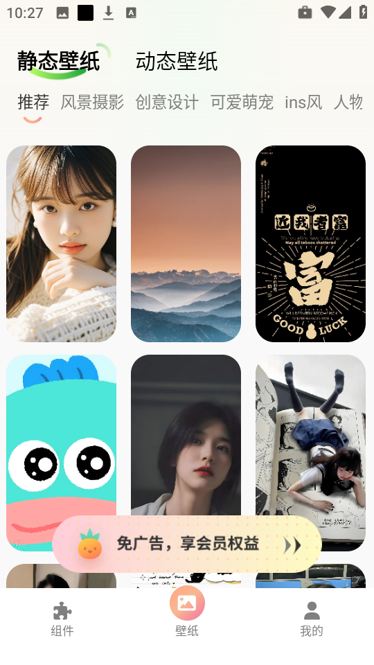 风铃小组件,集合了潮流组件、精美主题、动态壁纸以及独特图标等多元内容。其拥有壁纸一键预览功能,能方便快捷地助力用户打造专属的手机桌面风格。同时,还提供海量精致主题,涵盖动漫、明星、风景等多种风格选择,充分满足用户的个性化需求。
