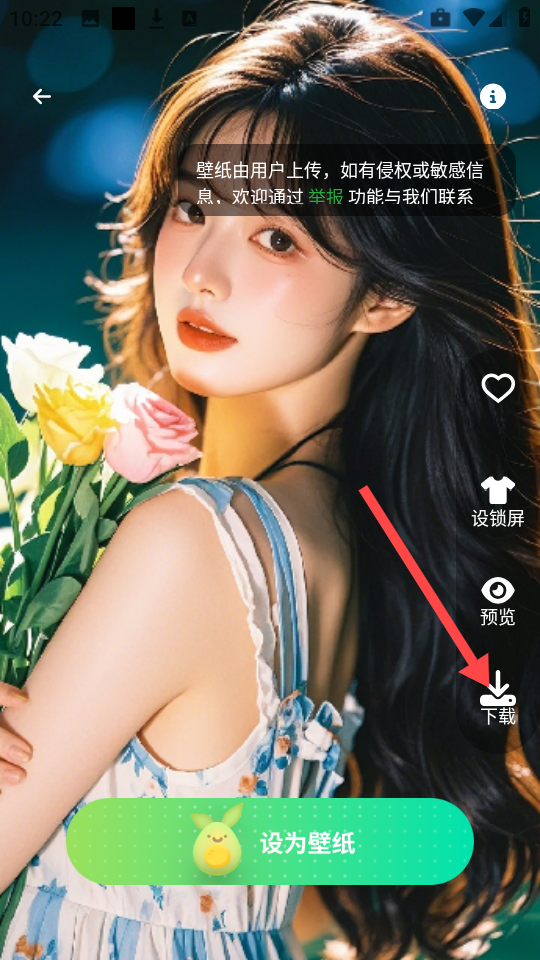 3、浏览壁纸,从中挑选出一张自己心仪的,然后点击屏幕上的“”按钮来完成保存操作。