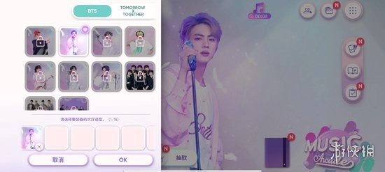 1、在游戏初始界面,会引导玩家完成队伍组建。玩家首先要从预先设定好的艺人组合里挑选一个,作为自己的游戏搭档。