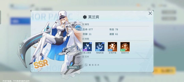 技能的设定相当尴尬。提供护盾的技能并非是给前排角色施加护盾,而是优先套给血量最少的角色。然而坦克角色基础血量较高,即便掉血后仍可能比后排角色肉,这就导致很容易套错盾。此外,小技能的奶量与自身攻击力并无关联,大招机制看似花哨却不太实用,虽说在竞技场或许能发挥出意想不到的效果,但相较于指挥官的复活技能,其滥用性还是差了些。