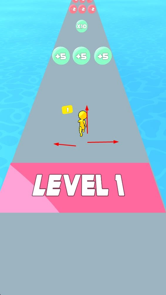 1. 在LEVEL1关卡里,控制黄色小人在赛道上进行移动,赛道上存在各类增益区域,指引小人进入这些区域。