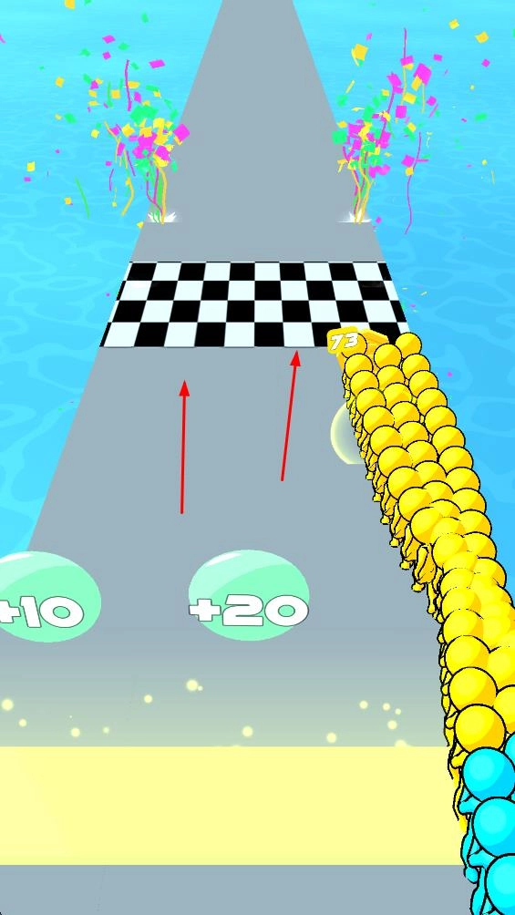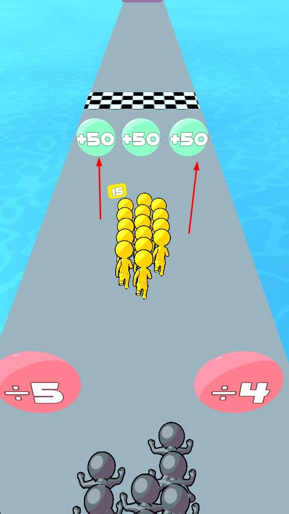 2、留意避开那些会使小人数量减少的区域,与此同时,收集赛道上能增加分数的道具,以此扩大小人队伍规模并提高分数。