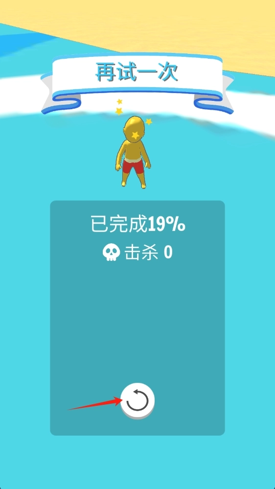 3、要是游戏失败了,可在失败界面查看游戏完成进度以及击杀数量,点击下方按钮就能重新挑战,努力在后续比赛里取得更优异的成绩。