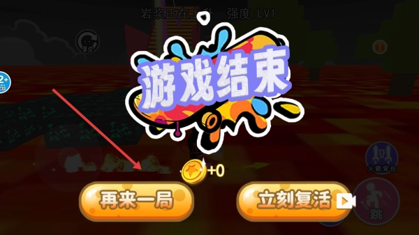 3、要是角色不幸被岩浆吞没,可点击“再来一局”重新发起挑战。在此过程中,需认真总结已走过的路线,优化操作手法,力求成功完成跑酷,逃离岩浆的威胁。