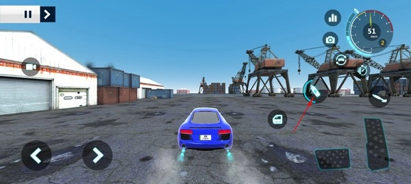6. 手刹功能:位于屏幕右侧最上方的把手图标代表手刹,此功能适用于漂移或者紧急停车的场景。