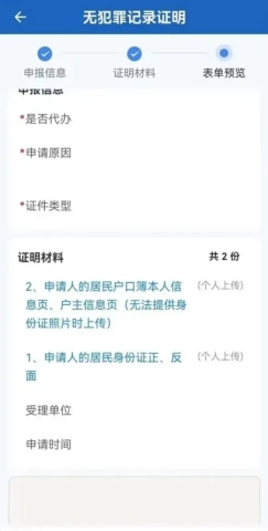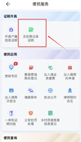 接下来的第二步,在相关选项中挑选“无犯罪记录证明”这一项。