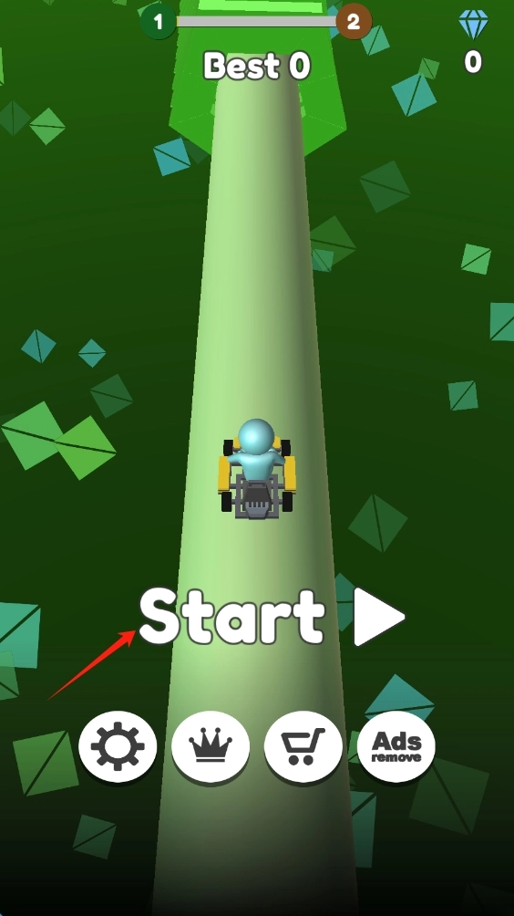 1. 轻点“Start”,开启绿色赛道的竞速挑战。操控角色驾驶车辆,于赛道上全力冲刺,点击“开始游戏”。