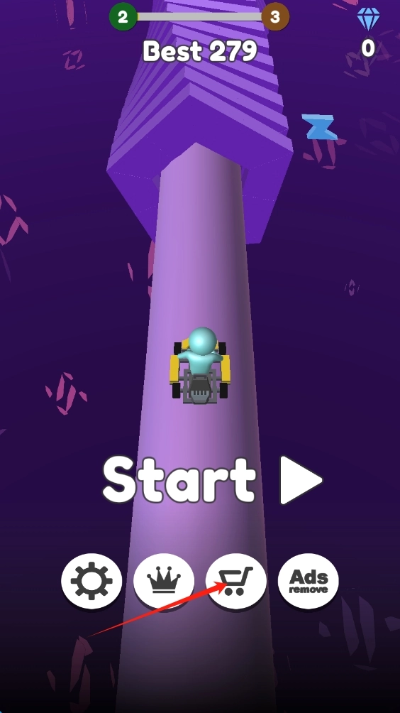 3、当完成当前关卡后,点击“Start”即可进入下一关。在这个过程中,你还能通过点击购物车图标来购买道具,这些道具能够助力你应对后续的挑战。